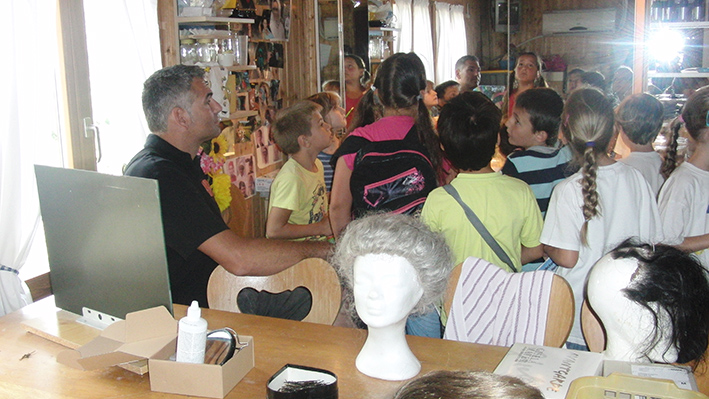 Ein Highlight war der Besuch in der Freilichtbühne. Wer hätte besser über die Freilichtbühne referieren können als Patrick, der selbst unzählige Rollen gespielt hat, noch heute aktiv mitwirkt, an Kulissen und Technik arbeitet und früher als Vorstand in Verantwortung gestanden hatte. Die Augen der Kinder waren erstaunt, als sie einen Blick hinter die Kulissen werfen und die „Maske“, den Schminkraum betreten durften.